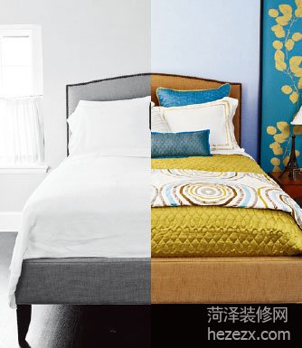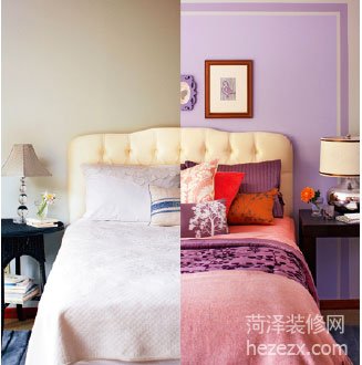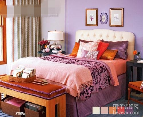 臥室原本確定為一種中性的背景氛圍,首先要做的是在其上面增加一種色彩,以此作為空間的主色調(diào)。灰、白、米色構(gòu)成的中性背景,適宜以薰衣草紫為主色調(diào),并通過深淺濃淡的變化,創(chuàng)造出浪漫溫馨的感覺。 1 、中性色彩大膽混搭 灰色的窗簾,米色床頭板和白色的床罩盡管色彩各異,卻全部統(tǒng)一在一種中性的格調(diào)中,因此可以進(jìn)行大膽混搭。 2、強(qiáng)化主題色裝飾 房間的主色調(diào)需要表現(xiàn)在一塊較大的面積上,例如床單床罩。將紫色床單作為調(diào)配色彩的起點(diǎn),然后在房間的其它地方增加或深或淺的顏色作為搭配。 3、圖案不宜過多過雜 嚴(yán)謹(jǐn)?shù)呐渖枰獔D案的協(xié)調(diào),才能避免雜亂無章。無需走極端,相同色調(diào)的枕套與鄰近色靠包搭配就是比較討巧的辦法。 4、多樣化質(zhì)地對(duì)比 天鵝絨床頭板和絲光被單給人以時(shí)尚的味道,而編織籃筐和木凳給人以質(zhì)樸的感覺。這種質(zhì)地的對(duì)比使房間顯得更為生動(dòng)。