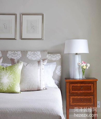 色彩搭配:普通的床罩和中性的墻壁顏色在臥室設計中并不出彩,但添加一個色彩明亮的布包就顯得不同。 設計點評:床頭采用印花牡丹圖案的面料來制作,融合了墻壁的色調,令空間更優雅。你也可以嘗試更大膽的設計,比如利用更明亮的對比色來打破房間的寧靜感。