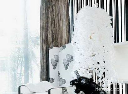 臥室 白色的臥室,純潔而溫馨,烘托出高雅簡潔的高貴氣質,所以不少人對白色家居情有獨鐘。白墻、天花板上白色吊燈、床頭白色落地燈光、白色床品等這些大面積的白色調,創造出整體空間的純潔美感。而在黑色床框、白色床套上的黑色條紋、黑色的鬧鐘以及墻壁上的黑、白系列的開關插座等的映襯下,顯得分外鮮明生動。 擔心單純的黑白給人以冰冷和沒有生氣的感覺?黑白的包容性可以讓你把各種鮮艷的色彩請進臥室,白色本身就是“超級大綠葉”,而黑色與暖色系列的映襯也別具風味,墻上壁畫、床頭的相架等都能為臥室增加溫暖、活躍的氛圍。