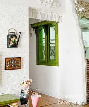 白色的墻,實木框架結構手工雕花的綠色窗框,一陣濃濃的白色田園風迎面吹來。寧靜中的美麗,透露著自然的高貴與典雅。門口的“稻草人”仿佛想要拉開綠野仙蹤篇章的序幕。而墻上掛著水壺形狀且帶有娃娃人頭的裝飾物,仿佛提醒著人們不要忘記給這個美麗的田園澆灌。 |