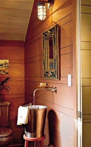 還記得小時候所使用的鉛桶嗎?臺盆的設計上做出了小小的創新,將鉛桶融入到了臺盆的設計中,小板凳作為桶的支架,簡單的設計,卻充滿生活的氣息。