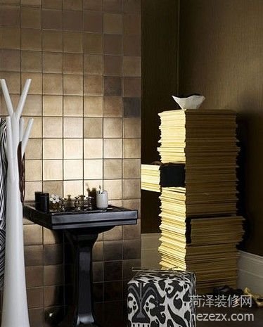 裝修就是將自己的想法成為現實的過成。黑色的臺盆配以白色的衣架,亮金色的墻磚與儲物柜,使得簡約的風格融入進了古典的氣質中,空間變的層次感分明。
