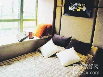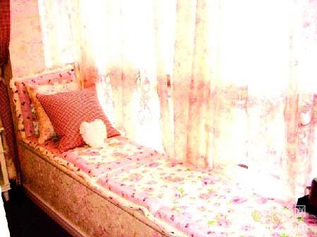 五變★空中單人床 如果你家的飄窗夠大,有兩三米長、近一米寬,而你又恰好是一位喜愛浪漫、希望沐浴星光睡去又被陽光喚醒的人,不妨把你家的飄窗改造成一張小小的“單人床”。