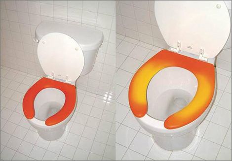 本文來自菏澤裝飾網 創意來源于生活,下面大家可以看到各式各樣形式奇特的產品,有蛋黃分離器、酒架、討水的花盆、變色馬桶圈、隱形眼鏡...希望大家看完這些作品,自己也能在生活中做一些發明,讓生活多些便利多些樂趣! 雖然中國的公廁中完全使用坐便的還比較少,但是在美國這樣的發達國家中,所有的公廁基本都是采用坐便的。這樣雖然可以提供更為舒適的如廁環境,但是也會帶來一定的尷尬。例如,如果剛剛有人使用過馬桶,而另外一個人在前者體溫沒有散盡前再次使用馬桶,坐在馬桶上感受著前者的體溫,這種情況,即便是不存在病菌,想必也會令人很不舒服,而為了避免上述情況,就有人設計出了這樣一款變色馬桶圈。 它的原理與我們之前介紹過的“感應溫度的家具”類似,都可以根據溫度來變換自身的顏色,也就是說當有人坐在馬桶上時,在體溫的作用下,馬桶圈的顏色就會改變,而只有當馬桶圈的溫度恢復到常溫時,顏色才會恢復到之前的均勻狀態。在公共廁所里裝上這樣的馬桶圈就能夠讓人們有效的避免“感受他人體溫”的尷尬了。 |