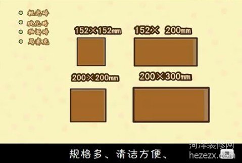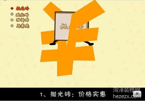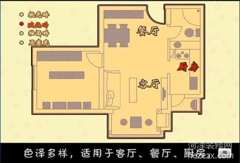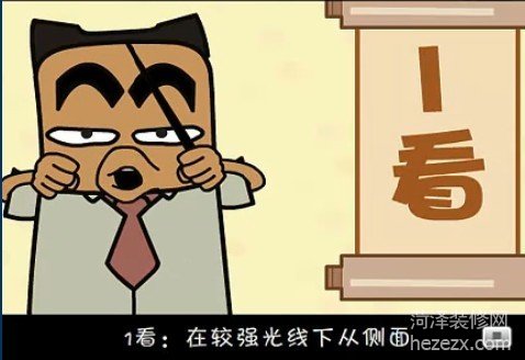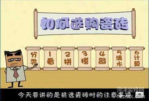 1.看瓷磚外觀是否平直。試想,如果每塊瓷磚的表面、側面都不平整,再好的瓦工也鋪貼不出整體平整的效果來。 2.看瓷磚表面是否有斑點、裂紋、磚碴、波紋、缺釉等問題,尺寸是否一致。 3.看瓷磚的花色圖案。好的產品花色圖案,細膩、逼真,而質量差的瓷磚花色圖案會有缺色、斷線、錯位等。 4.辨別瓷磚背面的顏色,釉面磚的背面顏色是紅色的,而玻化磚的背面應是呈現乳白色。 5.聽瓷磚的音色,方法是一手提著磚的邊,一手敲擊磚,好磚的聲音清脆響亮,差磚則低沉、悶濁。曾經試過辨別玻璃和玉器的應該想到,其實也是用的類似的方法,不同的是,辨別玻璃和玉器是要聽本身碰撞的聲音。 6.看瓷磚的硬度,說白了,同樣規格的磚,在手里掂掂,越沉的磚說明其密度越大,硬度也就越高。 7.看瓷磚的背面的吸水率。把瓷磚翻過來,往背面滴些水上去,滲得越慢,說明其質地越密,內在品質越好,差磚不但滲得快,過不多一會兒你把磚翻過來,正面都能透出水印來,出現“冒汗”的現象。 8.選購拋光磚時看其是否吸色。例如:一些比較好的品牌的拋光磚采用行業首創的超潔亮技術,即在普通拋光磚表面形成一層具有特殊功能且結構穩定的納米級保護層,完全填補了拋光磚拋光后磚面形成的氣孔,從而更防污、更耐磨、防滑性能更好。 【看圖學習瓷磚選購】