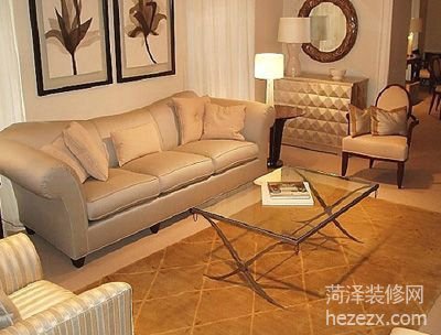 不固定區域的塊毯是人們犯的一個大錯誤。因為它們使視線轉移從而割裂了空間的統 一感,并且走在上面人很容易摔倒。 在買塊毯前先在地板上用尺放出要放置塊毯的位置。塊毯應該和沙發組連接在一起。 把所有坐具的前腳都放在塊毯上。 11.太多色彩和圖案