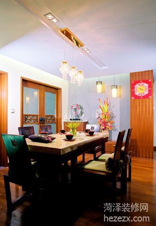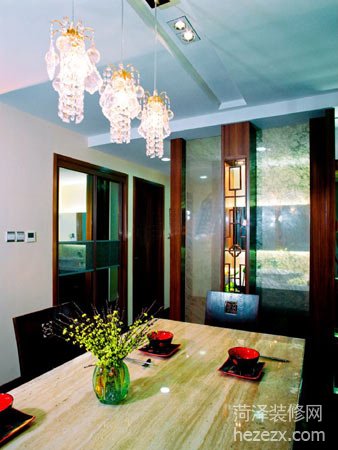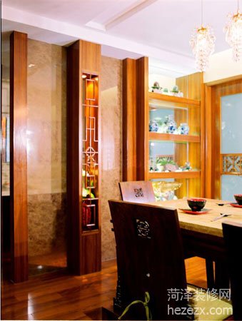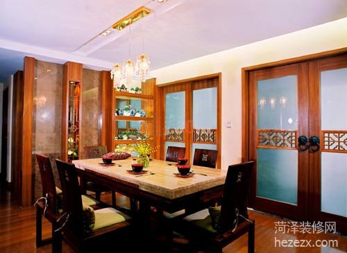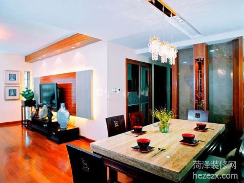 但是在其中顏色及區域搭配及軟裝飾造型處理上,多選用中式元素,并使得二者結合圓滿、順暢、和諧。