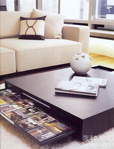 根據物件大小和形狀形成適當的收納空間 如果有大量的CD和書籍、錄像帶等物品,最好事先根據這些物品的具體形狀和數量,來制定適當的空間規模。定做尺寸相當的擱板或收納柜,可以避免空間的浪費。而且,整理起來有條不紊,視覺上也整潔許多。