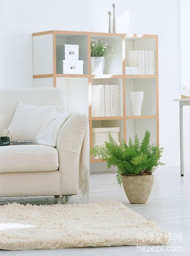 在房間里使用大面積的白色 如果你的居室面積小,一個最簡單的裝修方法就是可以大量使用白色:墻面、房頂、地面、家具、裝飾品,這些都是白色的好載體。使用大塊的白色可以使居室空間變得簡潔明快,而且白色也容易和其他顏色搭配,對光的反射率也最好,可以最大限度保證居室的明亮。