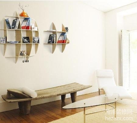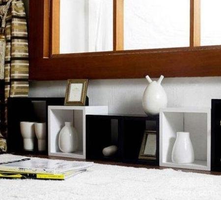 如何改造呆板的擱板,使之也能有些設(shè)計(jì)創(chuàng)意呢?下面兩張圖片是很好的范例。對(duì)于直線的擱板,可利用墻壁的拐角,錯(cuò)落的擱置,跳出傳統(tǒng)的放置習(xí)慣。而把方格擱板隨意的放在地板上使用,是不是讓您在驚奇之外還感覺到耳目一新呢。 |