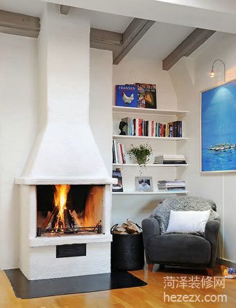 借閣樓原來的煙囪,重新粉飾后打造成了壁爐;基礎是耐火磚,沒有預留的煙道最終實現了真火的愿望。在冬日里點燃一些木炭,心中盡是滿滿的溫暖。
