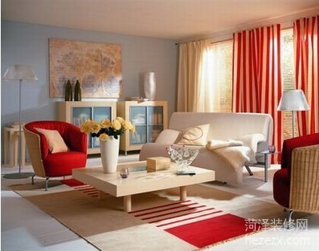 巧妙配色——喜氣洋洋鬧洞房 臥室也就是洞房,是新婚家庭的中心,也是新婚夫婦高度重視的地方。它的裝飾應體現出喜慶、溫馨、浪漫的氣息,紅色是傳統的中國式婚禮的主色調,因此中國人也比較喜歡用喜慶的紅色裝點新房。 紅色的床上用品、紅色的窗簾等,結婚的當天,就靠這些裝飾來營造喜慶氣氛。窗簾可用外薄內厚的兩層,既遮擋視線、保持室溫,又不影響白天休息,窗簾、床罩、沙發罩等織物的圖案、顏色的選擇要協調。再輔以適當的帶有個性特點的裝飾物,使室內充滿喜慶浪漫的氣息,也可體現主人對美好生活的追求。