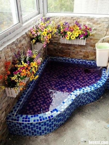這樣一個愛心型的小游泳池放在角落,給孩子玩玩足夠了呀。