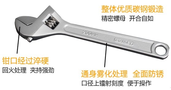 其實(shí)如果就是在家用的話,一個(gè)活動(dòng)扳手其實(shí)就足夠了,而規(guī)格也有從4、6、8到18等各個(gè)尺寸應(yīng)有盡有的史丹利的鍍鉻高碳鋼活動(dòng)扳手就是一個(gè)很好的選擇。史丹利的活動(dòng)扳手的整體都是用最優(yōu)質(zhì)的碳鋼鍛造的,特別是鉗口一部分,在經(jīng)過(guò)特殊工藝淬硬、回火處理后,夾持的力道更加強(qiáng)勁,在鉗口山的刻度也是鐳射工藝,不但準(zhǔn)確度高,而且還好辨認(rèn);在這個(gè)扳手上還配有最精密的螺母,圓潤(rùn)自然,開合自如;當(dāng)然也不用擔(dān)心生銹的問(wèn)題,扳手的通甚都經(jīng)過(guò)霧化處理,是能夠全面防銹的。 在使用活動(dòng)扳手的過(guò)程中也有很多的注意事項(xiàng)。在使用活動(dòng)扳手的時(shí)候不能隨便給扳手上加套管,這樣會(huì)讓扭矩和活動(dòng)扳手的承受力度承受不了,容易出現(xiàn)損壞工具的情況;另外,不要因?yàn)轫樖志桶寻馐之?dāng)錘子用敲敲打打的,這樣會(huì)讓活動(dòng)扳手損壞的。 |