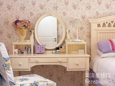 原本不是一套的梳妝臺和臥床搭配在一起。