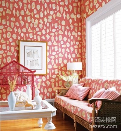 栩栩如生的黃色貝殼圖案布滿了墻面和沙發(fā),珊瑚白色和暖紅色相搭配,共同營造出另類風(fēng)情的海底世界。