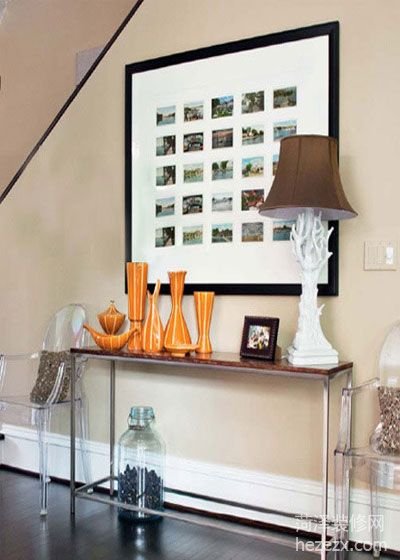 本文來自菏澤裝飾網(wǎng) 如果家中的房間帶有樓梯,你可以借助樓梯側(cè)壁與客廳之間的通道,打造出一個帶有簡易會客功能的玄關(guān)。玄關(guān)家具的風(fēng)格最好能與客廳保持一致,而家具功能則要考慮玄關(guān)獨有的特點。比如,桌案最好選擇具有線條感的條幾,擺在樓梯側(cè)壁能十分貼合,其細(xì)長的造型與傾斜的樓梯墻面會組成有趣的三角結(jié)構(gòu)圖,墻面裝飾可以布置成照片墻或是掛上與條幾組相應(yīng)的現(xiàn)代掛畫,再配上相同風(fēng)格的臺燈、相框和花瓶等,閑坐、會客都會很有情調(diào)。