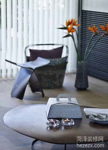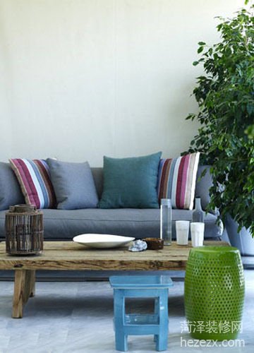 藍色是寧靜純潔的色彩,在這個淺淺藍色的休憩區空間中,所營造出的靜謐感,讓再煩躁的心靈都能沉寂下來。而粗木材質的茶幾則給人天然溫潤的舒適,因為木色是自然界中最基礎的色彩,有了它和一盆綠色ZHI物的點綴,仿佛讓置身其中的人忘了塵世喧囂。 |