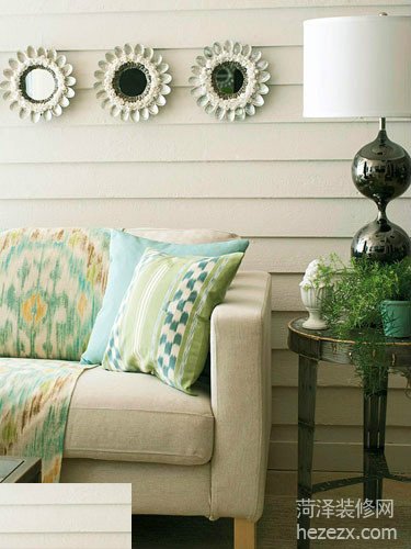 布方巾。素面的沙發(fā),可以利用與靠包同色系的布料來制作方巾,使沙發(fā)整體看起來更加艷麗。如此輕巧簡便即能美化居室氣氛,是極為理想的居家裝飾之法。