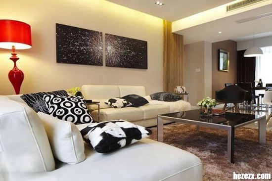 兩個黑白的凳子,集現代造型設計和木質混搭而成,即是裝飾也有實用功能。