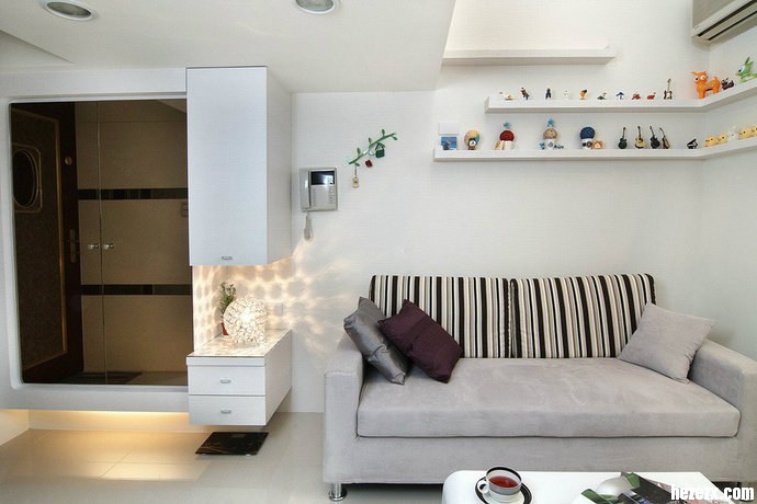 縮短了樓梯,增設出廚具設備,又利用樓梯下方做出豐富的收納機能,更善用通透和反射性材質,將空間有效放大;入門右側衛浴門片內縮改為斜角暗門,增加室內空間,小坪數卻蘊藏超強機能。門片以茶鏡鋪設放大空間,鞋 ...