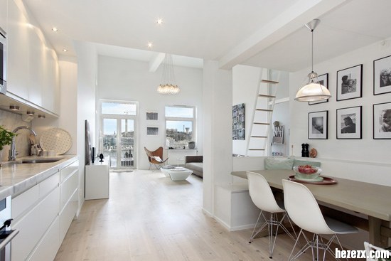 整個公寓以白色為主,突顯了北歐浪漫的風情。住在這里每天都可以看到出口的漁船和游艇,非常愜意。接下來就跟隨小編一起欣賞吧。 白色的浴缸和墻面搭配深色的地板,一半的玻璃設計易于防止水濺出。