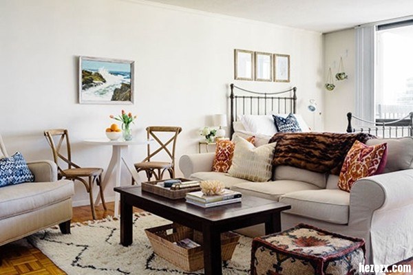 客廳與臥室合并的開放設計并不多見,而崇尚隨性自由生活的女主人則對此并不在意。徹底的開放式空間讓整個家成為一個統一的整體,更加自由化、個人化。簡約而注重細節的搭配,讓空間氣質柔和而有親和力。 ...
