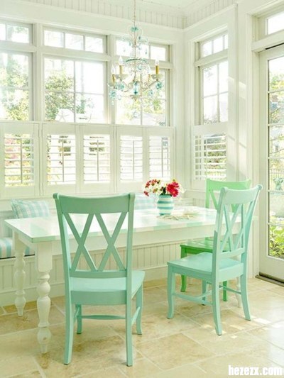 白色與淺藍色的搭配充滿了地中海風情,淡雅的色彩顯得優雅動人