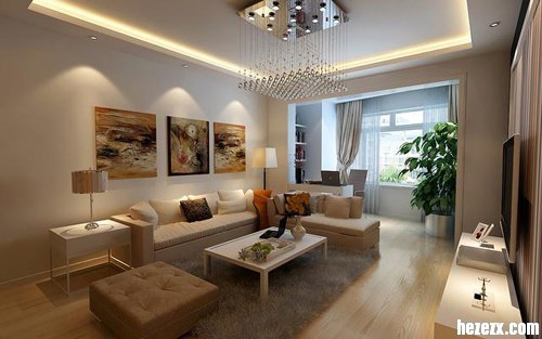 背景墻上抽象藝術(shù)畫給溫馨的客廳帶來一抹藝術(shù)雅韻。